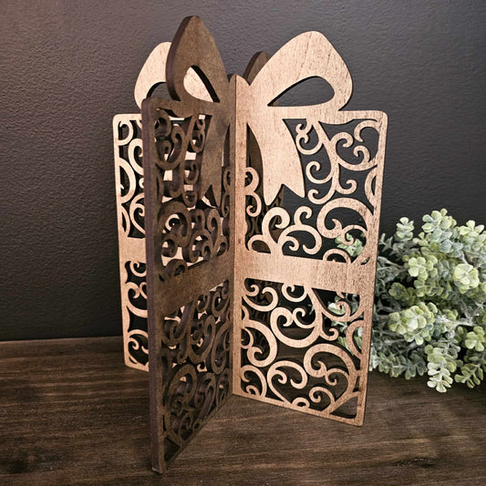 Wood 3D Gift Holiday Christmas Decor Table Filler